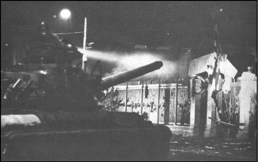 Είσαστε αδέρφια μας, κραύγαζαν παγωμένοι πια, δεν ήταν σύνθημα, ήταν κραυγή για βοήθεια, ήταν κάλεσμα, το εννοούσαν. Κουνούσε κάποιος τα χέρια του σαν πουλί πάνω στην κολώνα της κεντρικής πύλης για να ηρεμήσει τον κόσμο, μέχρι που το τανκ γκρέμισε κολώνες πόρτα κι αυτόν μαζί, μαρσάρισε, πέρασε πάνω απ’ τ’ αυτοκίνητα (δυό ήταν τ’ αμάξια επέμενε έκτοτε, τα θυμάται) σταμάτησε παραπέρα με τη μηχανή αναμμένη να ξερνάει φωτιά.