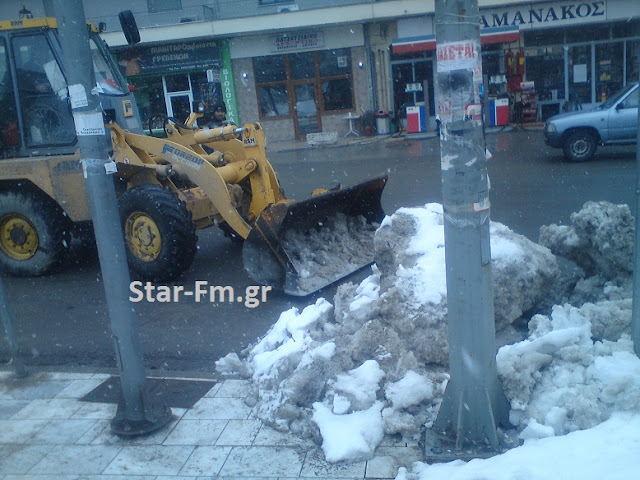 Από νωρίς το πρωί, το JCB του Δήμου Γρεβενών, παρά την έντονη χιονόπτωση, καθάριζε τους δρόμους από το συσωρευμένο χιόνι που βρισκόταν στην άκρη της πλατείας Ελευθερίας.