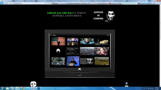 Στην ιστοσελίδα εμφανίζονταν για περίπου τρεις ώρες τα σύμβολα και το μήνυμα των Anonymous στα ελληνικά σε μαύρο φόντο ενώ στο κέντρο υπήρχε η φωτογραφία ενός σκύλου μαζί με μια ομάδα κουκουλοφόρων.