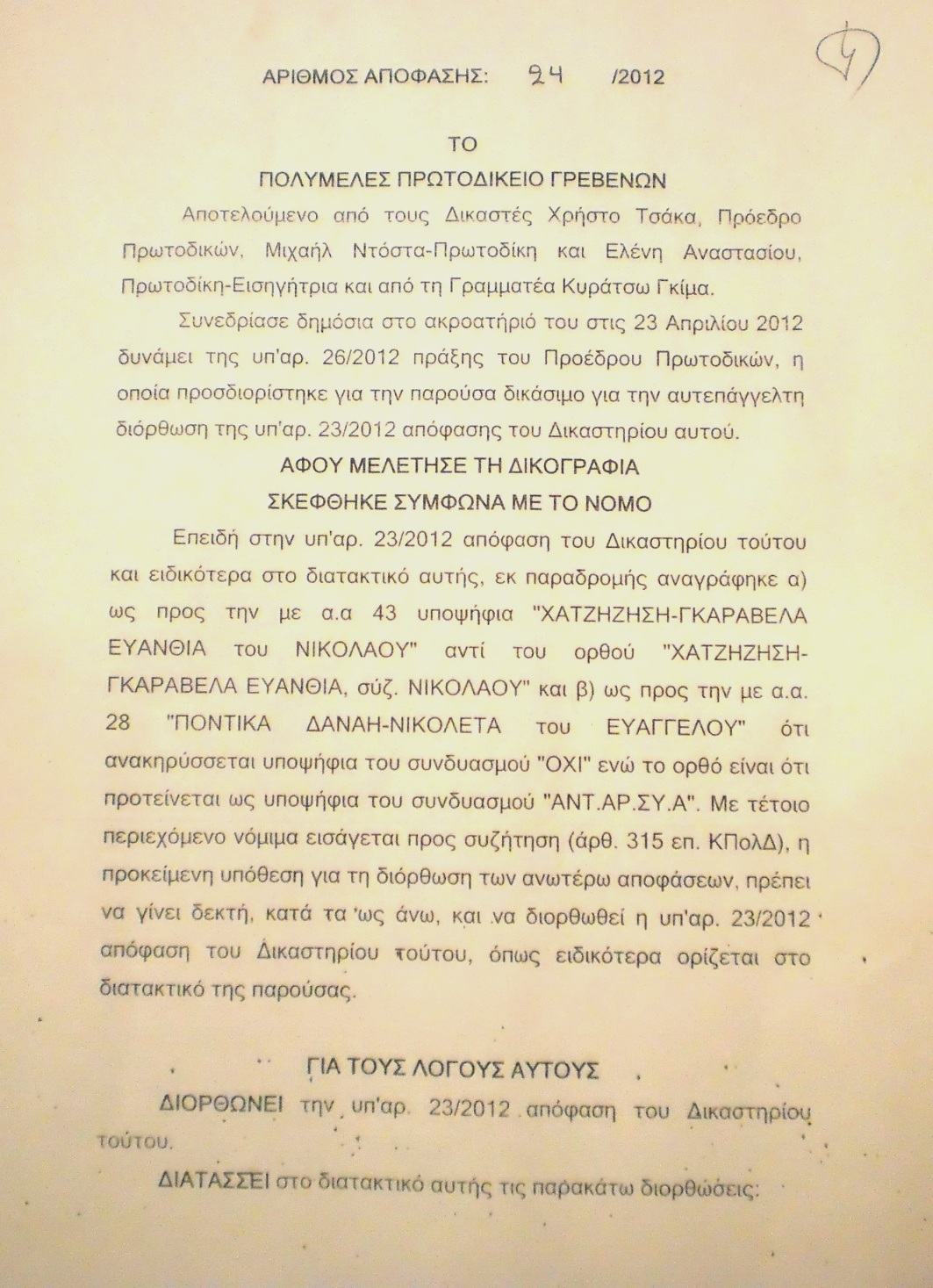 Η υποψήφια με την Νέα Δημοκρατία κα Χατζηζήση- Καραβέλα Ευανθία, είχε γραφτεί λάθος στην πρώτη ανακοίνωση του Πολυμελούς Πρωτοδικείου Γρεβενών. Το ίδιο συνέβη με την κα Δανάη- Νικολέτα Ποντίκα που εμφανίστηκε υποψήφια με το ΟΧΙ ενώ η ίδια δήλωσε υποψήφια με το ψηφοδέλτιο της ΑΝΤ.ΑΡ.ΣΥ.Α. Σύμφωνα με έγκυρες πηγές του Star-Fm.gr, σε πιθανή ένσταση (ίσως) τα ψηφοδέλτια της Νέας Δημοκρατίας και του ΟΧΙ να ήταν άκυρα στον Νομό Γρεβενών. Δείτε όλους τους 43 υποψηφίους στον Ν.Γρεβενών- Εκτός ψηφοδελτίων Ρηγάκης Νικόλαος (ΛΑΟΣ) και Δέσποινα Μπάκα (Ανεξάρτητοι Έλληνες)… Διαβάστε τις αλλαγές: Star-Fm.gr: Να ευχηθούμε ότι δεν θα επέλθουν άλλες αλλαγές. Πλοήγηση άρθρων Εθελοντές, νεολαίοι και στελέχη του προεκλογικού αγώνα του Υποψηφίου Βουλευτή Γρεβενών Τιμολέων Κοψαχείλη Τα “απίθανα” κόμματα που διεκδικούν τη ψήφο μας!