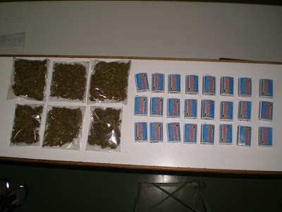 · μια χάρτινη συσκευασία χυμού 1,5 λίτρου, εντός της οποίας υπήρχαν επιμελώς κρυμμένα είκοσι ένα (21) σπιρτόκουτα με κάνναβη, βάρους 157,1 γραμμαρίων και