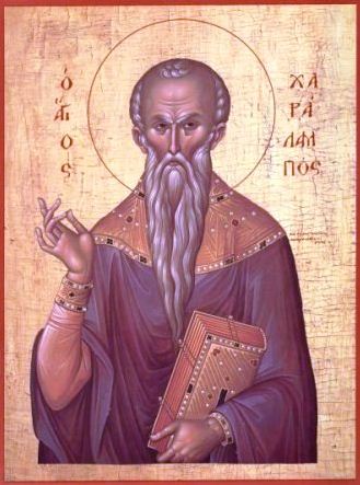 Ὡς στῦλος ἀκλόνητος, τῆς Ἐκκλησίας Χριστοῦ, καὶ λύχνος ἀείφωτος, τῆς οἰκουμένης σοφέ, ἐδείχθης Χαράλαμπες· ἔλαμψας ἐν τῷ κόσμῳ, διὰ τοῦ μαρτυρίου, ἔλυσας καὶ εἰδώλων τὴν σκοτόμαιναν μάκαρ· διὸ ἐν παρρησίᾳ Χριστῷ, πρέσβευε σωθῆναι ἡμᾶς.