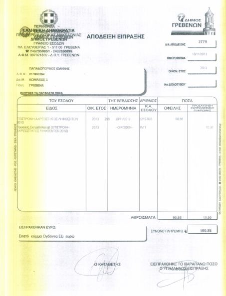 οι απαιτήσεις του Δήμου κατά φυσικών προσώπων, δεν συμψηφίζονται με τυχόν απαιτήσεις εταιριών συμφερόντων συγγενικών τους προσώπων, κατά του Δήμου. Συνεπώς, τυχόν εκκρεμότητες του Δήμου προς κεφαλαιουχικές εταιρίες του Οικογενειακού Ομίλου Ιωάννη Παπαδόπουλου (Ανώνυμες, Offsore κλπ), είναι αδύνατο να συμψηφιστούν με οφειλή που έχει βεβαιωθεί στον ίδιο και στο προσωπικό του ΑΦΜ. Μια οφειλή του Δήμου ποσού 100,85 € προς τον ίδιο, έχει ήδη συμψηφιστεί, όπως προκύπτει και με την επικαλούμενη απ’ αυτόν (ως σχετικό έγγραφο 6) απόδειξη είσπραξης της 18-11-2013, το μικροποσό της οποίας για λόγους εντυπωσιασμού, διέγραψε με μαύρο μαρκαδόρο.