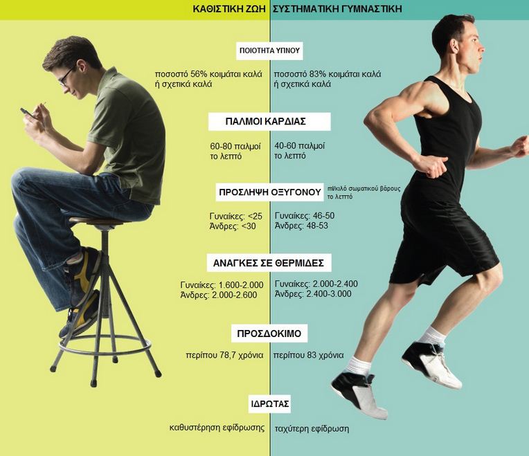 Είναι γνωστό πως η γυμναστική χαρίζει ζωή και μάλιστα γεμάτη ποιότητα. Το «φωνάζουν» όλοι οι ειδικοί. Εχετε σκεφτεί ποτέ πως είναι η ζωή ενός τεμπέλη και ενός αθλητικού τύπου; Ποιες είναι οι διαφορές στην καθημερινότητά τους και ποια είναι τα οφέλη τελικά της γυμναστικής;