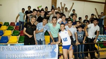 Η Εύα στην παρουσία της με την Εθνική ομάδα στο Μπακού φωτογραφήθηκε με σημαία και πανό που είχαν ετοιμάσει για καλωσόρισμα οι νέοι θαυμαστές της ενώ δέχτηκε και ανθοδέσμη από παράγοντα της νέας της ομάδας.
