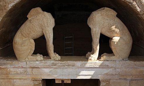 Με την χθεσινή αφαίρεση λιθόπλινθων ήρθε στο φως σχεδόν ολόκληρη η πρόσοψη του ταφικού μνημείου, που αποτελεί μία εξαιρετικά πρωτότυπη σύνθεση για την αντίστοιχη αρχιτεκτονική του τύπου του μακεδονικού τάφου, του τελευταίου τετάρτου του 4 π.Χ αιώνα.