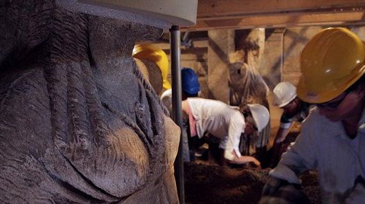 - Ολοκληρώθηκε η τελική προσωρινή υποστήλωση και αντιστήριξη στον πρώτο χώρο, πίσω από τις Σφίγγες.