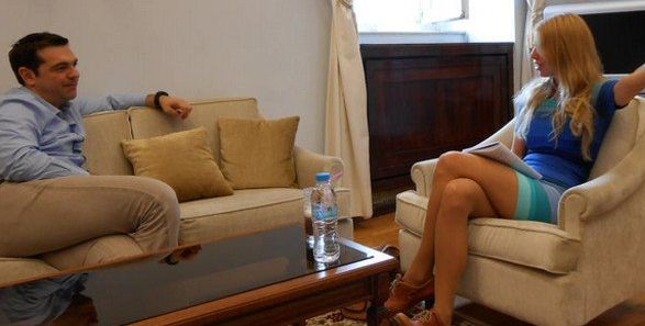 Ο Τσίπρας της μιλάει εκτενώς για την κρίση, για την ανάγκη να σβήσει ένα μεγάλο μέρος του χρέους («Η αναστολή του χρέους ή πλήρης καταστροφή της Ευρώπης»), τι θα κάνει με την Μέρκελ και ξεδιπλώνει γενικά τις γνωστές του θέσεις.