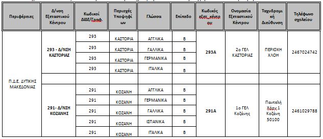 Από τη Δ.Δ.Ε. Γρεβενών γνωστοποιείται ο πίνακας με τα εξεταστικά κέντρα του Κρατικού Πιστοποιητικού Γλωσσομάθειας Νοεμβρίου 2014 και η κατανομή των υποψηφίων σ’ αυτά.