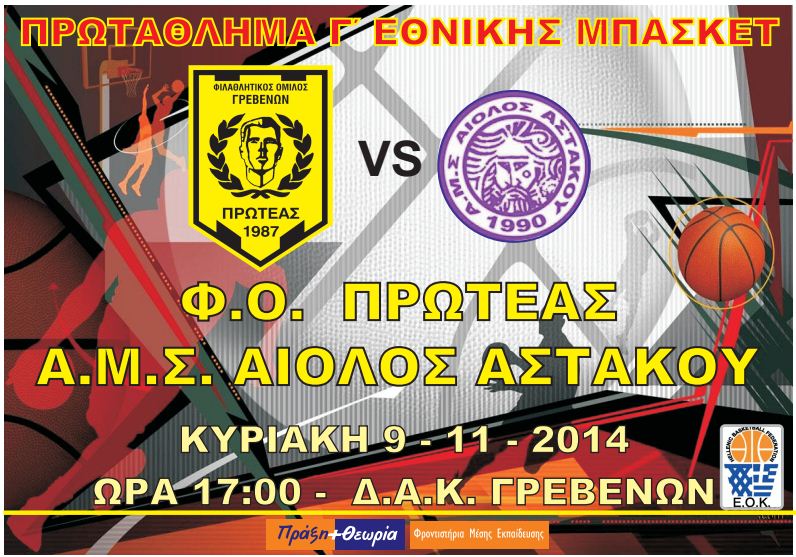 Στις 5:00 το απόγευμα, η ομάδα του Πρωτέα, υποδέχεται στο κλειστό των Γρεβενών τον Αίολο Αστακού, στο πλαίσιο της 5ης αγωνιστικής του 1ου ομίλου του Βορρά στην Γ Εθνική κατηγορία.