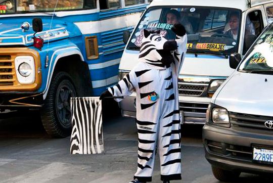 Θα τις βρει κανείς σε διασταυρώσεις δρόμων στη Βολιβία. Στην εν λόγω χώρα δεν έχουν μόνο τις «ζέβρες» που είναι οι διαγραμμίσεις στο δρόμο, αλλά και ανθρώπους ντυμένους ζέβρες που επιβάλλουν τον ΚΟΚ στους απείθαρχους οδηγούς. Τι κάνουν; Πολλά, αλλά για να καταλάβετε αν κάποιος πατήσει τη διάβαση πεζών, οι ζέβρες θα τον περικυκλώσουν, θα ανέβουν στο καπό του και θα τον νουθετούν μπροστά σε όλο τον κόσμο.