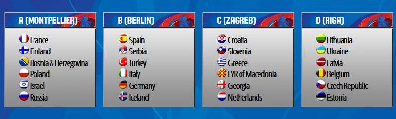 Θυμίζουμε πως για πρώτη φορά, η διοργάνωση θα διοργανωθεί από τέσσερις χώρες: Πρόκειται για τις Γαλλία, Γερμανία, Λετονία και Κροατία. Οι πόλεις που θα αποτελέσουν την “καρδιά” του Eurobasket θα είναι οι: Ζάγκρεμπ (Κροατία), Μονπελιέ και Λιλ (Γαλλία), Βερολίνο (Γερμανία) και Ρίγα (Λετονία).