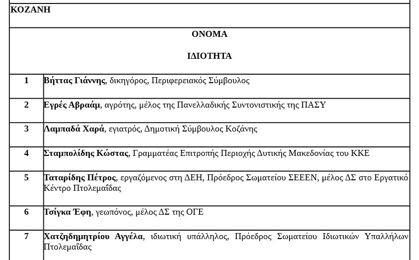 Ανάμεσά τους είναι εργαζόμενοι συνδικαλιστές από το εργατικό συνδικαλιστικό κίνημα, πρόεδροι μεγάλων Ομοσπονδιών του ιδιωτικού τομέα, πρόεδροι κλαδικών συνδικάτων, Εργατικών Κέντρων, στελέχη του ΠΑΜΕ.