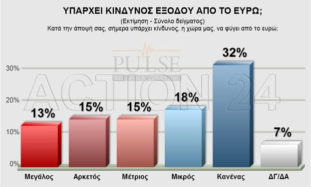 Σύμφωνα με την μέτρηση της Pulse το ποσοστό της Χρυσής Αυγής είναι σταθερό, ενώ μία οριακή πτώση του ποσοστού του εμφανίζει το ΠΑΣΟΚ.