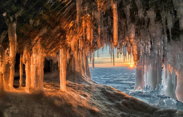 Ο ίδιος με τη βοήθεια ντόπιων οδηγών κατάφερε να φτάσει στα παγωμένα σπήλια στο νησί Olkhon, όπου αντίκρισε εκατοντάδες σταλακτίτες και τεράστιους ογκόλιθους πάγου, που δημιουργούσαν ένα εντελώς απόκοσμο, αλλά καθόλα συγκλονιστικό σκηνικό.
