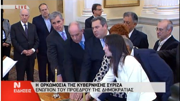 Εννιά υπουργοί, με πρώτο τον Πάνο Καμμένο, ορκίστηκαν με θρησκευτικό όρκο ενώπιον του Αρχιεπισκόπου Ιερώνυμου.