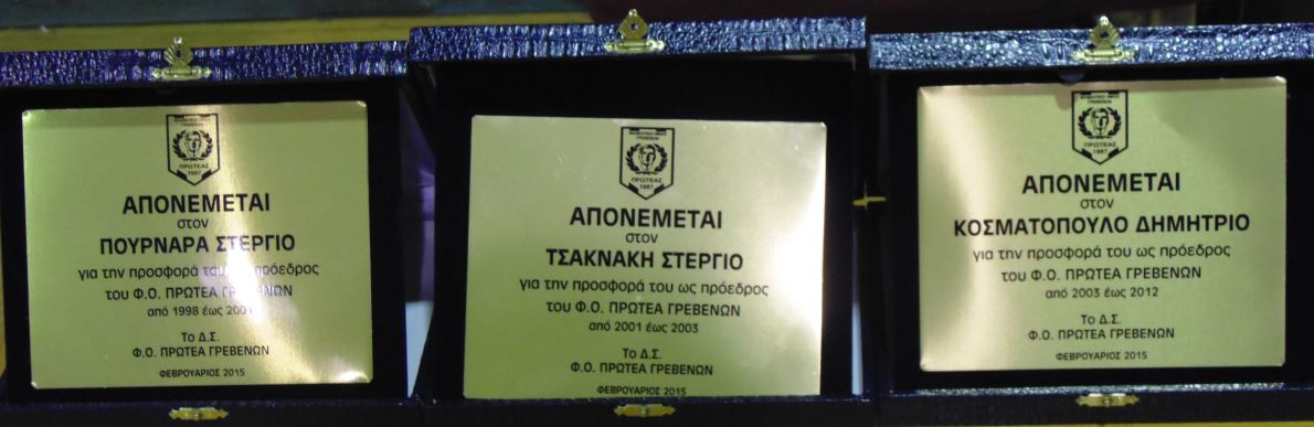 Μετά τον αγώνα με την ομάδα της Καρδίτσας, η Διοίκηση της ομάδας μπάσκετ του Πρωτέα Γρεβενών, βράβευσε τους πρώην προέδρους της Διοίκησης: