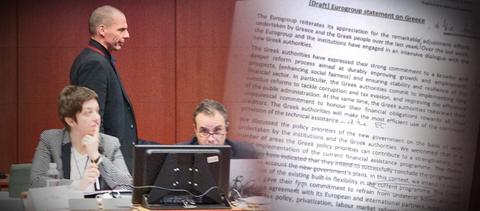 Σχέδιο ανακοίνωσης του Eurogroup, με το οποίο μεταξύ άλλων εμφανίζονταν «οι ελληνικές αρχές να εκφράζουν την πρόθεσή τους να ζητήσουν εξάμηνη τεχνική επέκταση του ισχύοντος προγράμματος ως ενδιάμεσο βήμα», απέρριψε η Ελλάδα, σύμφωνα με πηγές του υπουργείου Οικονομικών, κατά τη διάρκεια της συνόδου των υπουργών της ευρώζώνης.