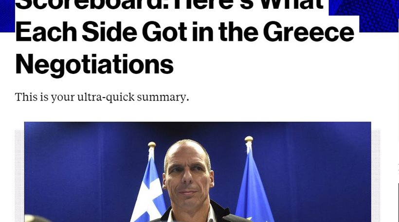 Με όλα αυτά, γράφει το Bloomberg, μπορεί να φαίνεται ότι η Ελλάδα κέρδισε λίγα από το Eurogroup αλλά ο Γιάνης Βαρουφάκης θα μπορέσει να επιστρέψει στην Ελλάδα και να πει ότι πήρε ό,τι μπορούσε και ότι μπόρεσε να παλέψει σκληρά για τη χώρα. «Αυτό για την ώρα μπορεί να είναι αρκετό για μια χώρα που ένιωθε ότι δεχόταν σκληρά χτυπήματα από τους ευρωπαίους εταίρους» καταλήγει το άρθρο του Bloomberg.