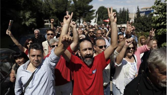 Στον προαύλιο χώρο του Ραδιομεγάρου στην Αγία Παρασκευή μπήκαν εργαζόμενοι της ΕΡΤ οι οποίοι ανταποκρίθηκαν στο κάλεσμα της ΠΟΣΠΕΡΤ.