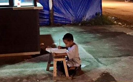 Η φωτογραφία του 8χρονου αγοριού που κάθεται σε ένα αυτοσχέδιο θρανίο και διαβάζει υπό το φως των Mc Donald’s κάνει το γύρω του κόσμου και προκαλεί συγκίνηση.