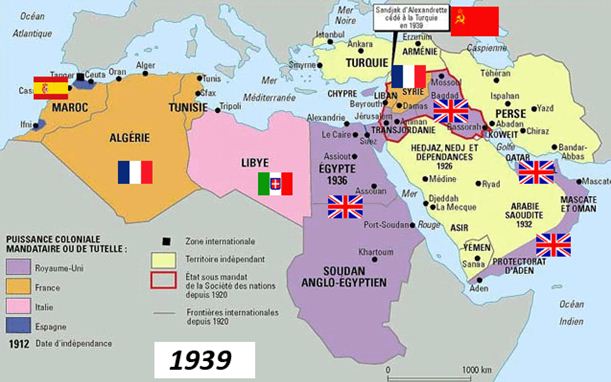 Τα σύνορα αυτού που βλέπουμε σήμερα στη Μ. Ανατολή, (Συρία, Λίβανος, Ιράκ, Ιορδανία, Τουρκία κλπ) είναι η «μοιρασιά» των Μεγάλων της τότε Εποχής που διαμοίρασαν τα εδάφη της καταρρέουσας Οθωμανικής Αυτοκρατορίας που ξεκίνησε με την Συμφωνία της Κωνσταντινούπολης το 1915, που προέβλεπε σε περίπτωση νίκης της Ρωσίας και των δυτικών συμμάχων να καταλάβει η Ρωσία τμήμα της ανατολικής Μικράς Ασίας, της Πόλης και των Στενών. Στη συνέχεια το 1916 υπογράφεται η Συμφωνία μεταξύ Αγγλίας και Γαλλίας, «η Σαικς-Πικό», όπως ονομάστηκε, από τους αντιπροσώπους των δύο κρατών τον βρετανό Μάρκ Σάικς, εκπρόσωπο της Αραβικής Διοίκησης της Βρετ. Αυτοκρατορίας και τον Γάλλο διπλωμάτη Φρανσουά Ζωρζ-Πικό στην οποία προεβλέπετο η συριακή ακτή μαζί με το Λίβανο και στην συριακή ενδοχώρα μέχρι τα πετρέλαια της Μοσούλης να περάσει στους Γάλλους και η Βρετανία αποκτούσε τις επαρχίες της Βαγδάτης και Βασόρας και στη συνέχεια και την ίδια την Παλαιστίνη. Το τέλος της Οθωμανικής Αυτοκρατορίας έρχεται με το τέλος του Α΄ Π.Π και τη Συνθήκη των Σεβρών τον Αύγουστο του 1920.