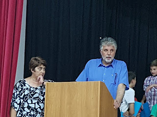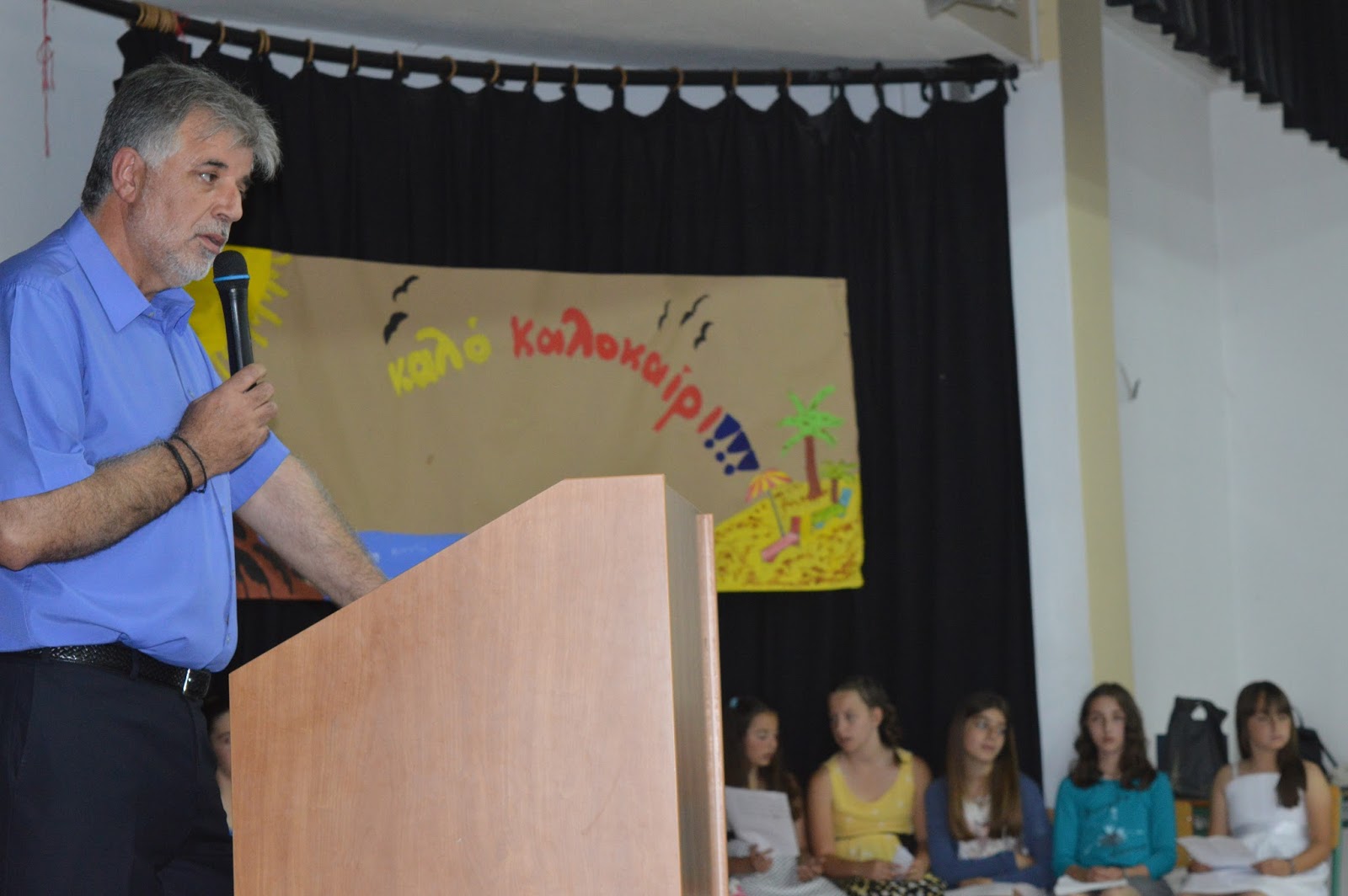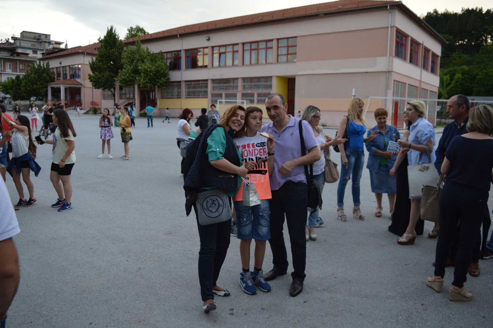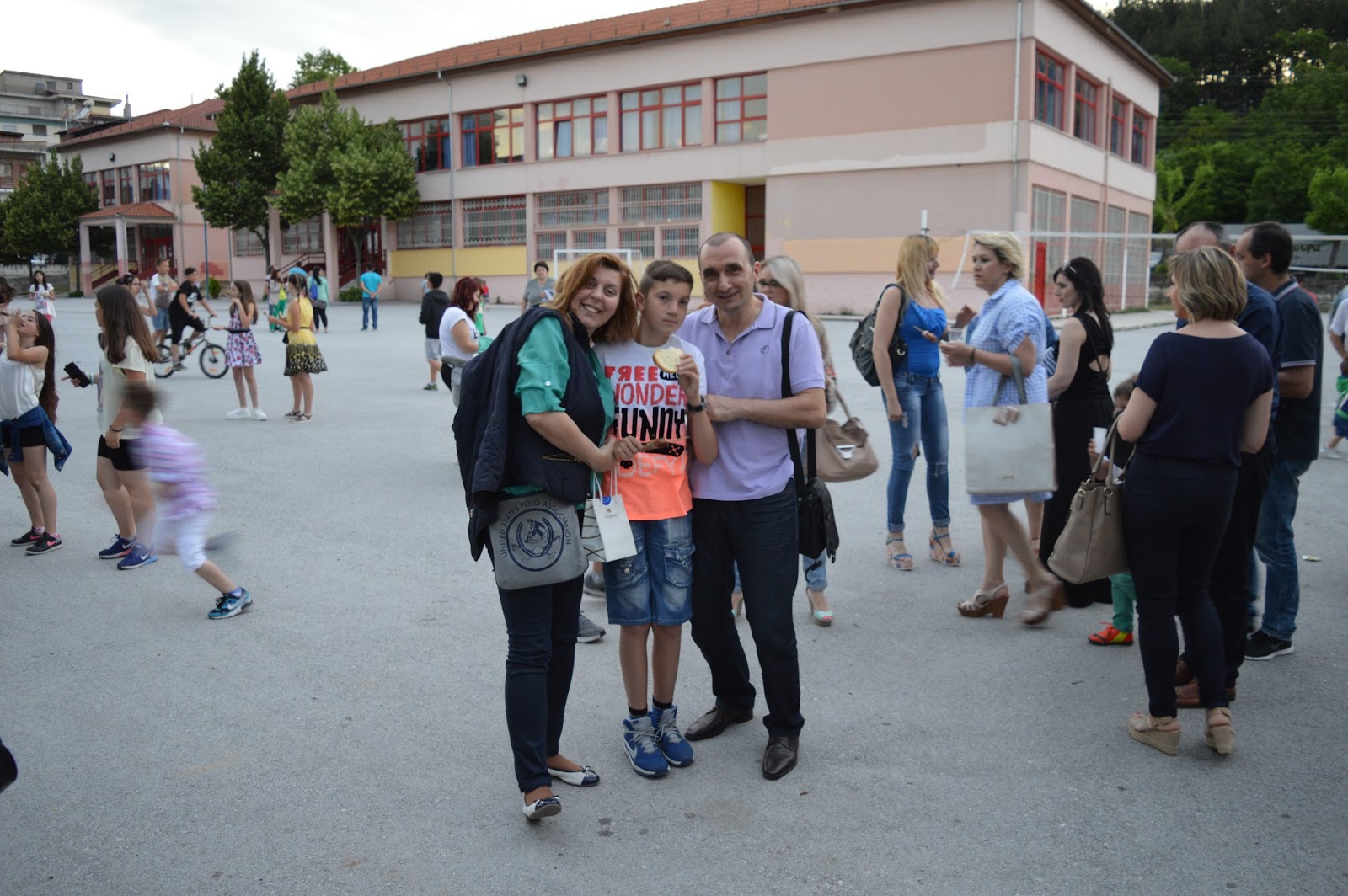 sxoleio 4oΦτάσαμε λοιπόν στο τέλος του ταξιδιού….Με πολύ μεγάλη επιτυχία πραγματοποιήθηκε στην αίθουσα πολλαπλών χρήσεων του 4ου 12/Θ Ολοημέρου Δημοτικού Σχολείου Γρεβενών, η γιορτή αποφοίτων του σχολικού έτους 2015-16.΄Ηταν όλοι εκεί… Οι απόφοιτοι, οι γονείς τους, οι φίλοι τους… Η αίθουσα κατακλύστηκε…. Είχαμε την τύχη να παρακολουθήσουμε μια συγκλονιστική σε οργάνωση, αναμνήσεις, συναίσθημα, εκδήλωση…Ο Διευθυντής του σχολείου στο χαιρετισμό του είπε: «Βρισκόμαστε σήμερα εδώ για να κλείσουμε αυτήν τη σχολική χρονιά με τον πιο όμορφο τρόπο, με την σημερινή  (12-6) αποχαιρετιστήρια γιορτή.          Κάθε χρονιά είναι ξεχωριστή για μας τους εκπαιδευτικούς, γιατί ξεχωριστά είναι και τα παιδιά μας ένα προς ένα. Νιώθουμε ιδιαίτερα συγκινημένοι που πρέπει να αποχωριστούμε τους μαθητές μας, μα συνάμα και υπερήφανοι που τους βλέπουμε να προχωράνε στο επόμενο σκαλί της ζωής τους.          Ευχόμαστε σε όλους και κυρίως στους μαθητές της ΣΤ΄ τάξης να μην ξεχάσουν τα όσα διδαχτήκανε αλλά να τα εφαρμόσουν στην πράξη, έτσι ώστε η νέα σχολική χρονιά να υποδεχτεί μαθητές που με τις πράξεις τους θα είναι παραδείγματα προς μίμηση.          Είναι πολλές οι αναμνήσεις που θα μας κρατάνε συντροφιά το καλοκαίρι και ελπίζουμε η σημερινή γιορτή να γίνει αφορμή για να παραμείνουν γονείς, δάσκαλοι και μαθητές ένας συνδετικός κρίκος.          Ας θυμηθούμε όλοι μας μέσα από αυτήν τη γιορτή ότι οι μαθητές είναι μία ομάδα η οποία αξίζει το χειροκρότημα για την προσπάθεια που κατέβαλλε και όχι για το αποτέλεσμα.»Παράλληλα έκανε τον τελικό απολογισμό του σχολείου, ευχαριστώντας τις Εκπαιδευτικές Αρχές, το Δήμο Γρεβενών, την Περιφερειακή Ενότητα Γρεβενών, το Σύλλογο Γονέων και Κηδεμόνων για τη στήριξή τους και την αγαστή συνεργασία που είχαμε όλη τη χρονιά επ’ ωφελεία των μαθητών και της απρόσκοπτης λειτουργίας του σχολείου. Αναφέρθηκε στα προγράμματα και τις δράσεις που υλοποιήθηκαν, ενώ έκανε την αυτοκριτική στηλιτεύοντας πράξεις και έργα ορισμένων ευτυχώς λίγων που δημιούργησαν προβλήματα με τη συμπεριφορά τους.Ακολούθησε χαιρετισμός της Γραμματέα του Συλλόγου και συγκινητική ομιλία της μαθήτριας της Στ΄ Τάξης Κωνσταντίνας Παράσχου.Οι μαθητές τα έδωσαν όλα. Εκπληκτικό θεατρικό από το τμήμα Στ2 με την καθοδήγηση της δασκάλας τους Μαρίας Γκουγκούδη και σκηνικά της γυμνάστριας Μυροφόρας Παπαδοπούλου και μια εξαιρετική αναδρομή στο ρεμπέτικο από τους μαθητές του Στ1 με την καθοδήγηση της γυμνάστριας Κωνσταντίας Γούλια.΄Εγινε αναλυτικός απολογισμός από τους ίδιους της μαθητές για την έκδοση της μαθητικής τους εφημερίδας «ΤΕΤΑΡΤΟΜΑΝΙΑ» και το ποσό που συγκεντρώθηκε θα μοιραστεί σε συλλόγους για φιλανθρωπικούς σκοπούς, ενώ στο τέλος  αφού δόθηκαν οι αντίγραφα των απολυτηρίων, μοιράστηκαν αναμνηστικά που αγόρασαν οι ίδιοι οι μαθητές και δώρα από το Σύλλογο Γονέων και Κηδεμόνων.Η εκδήλωση τελείωσε αργά το βράδυ στην αυλή του σχολείου, αφού οι μαμάδες είχαν ετοιμάσει κάθε είδους φαγητά και γλυκά, έψησαν σουβλάκια με πολύ χορό και κέφι.Ευχόμαστε καλό καλοκαίρι σε όλους!!!