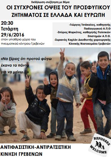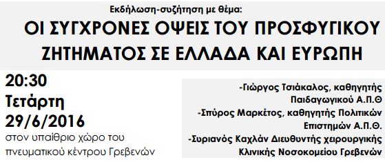 ΤΕΤΑΡΤΗ 20:30 29-6-2016 ΣΤΟΝ ΥΠΑΙΘΡΙΟ ΧΩΡΟ ΤΟΥ ΠΝΕΥΜΑΤΙΚΟΥ ΚΕΝΤΡΟΥ ΓΡΕΒΕΝΩΝ