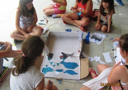 Τα παιδιά το άκουγαν με αμείωτο ενδιαφέρον και παρατηρούσαν τις εικόνες με πολλή προσοχή. Έπειτα σχηματίστηκαν τέσσερις ομάδες και η κάθε ομάδα κλήθηκε να κατασκευάσει το μπλε κουτί της ιστοριούλας που μόλις διαβάστηκε!