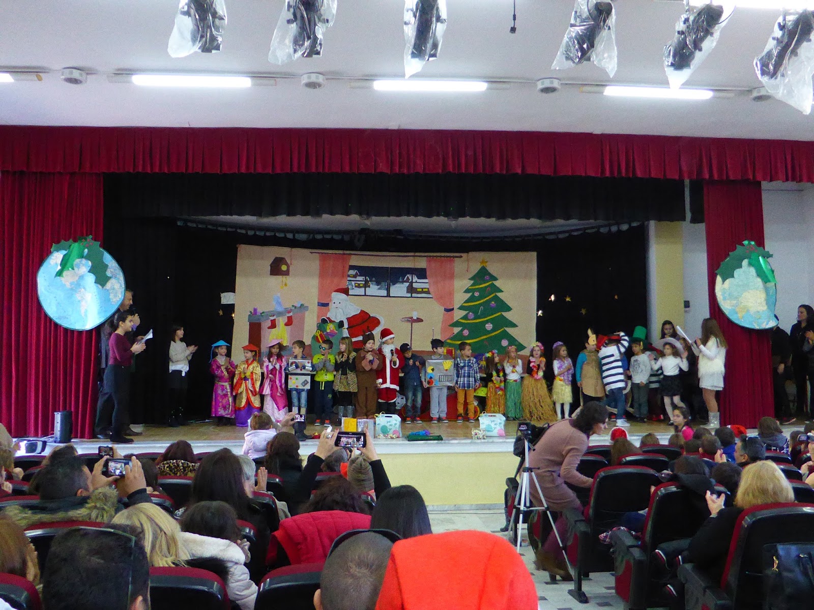 Σε μια εκπληκτική μουσικοχορευτική χριστουγεννιάτικη γιορτή, οι μαθητές της Α΄και Β΄Δημοτικού, ξεδιπλώνοντας επί σκηνής το ταλέντο τους, εξέπλη&xxi;αν τους θεατές, που για μια ακόμη φορά γέμισαν ασφυκτικά την αίθουσα πολλαπλών χρήσεων του σχολείου, παρουσιάζοντας χριστουγεννιάτικα και πρωτοχρονιάτικα έθιμα απ’ όλον τον κόσμο.