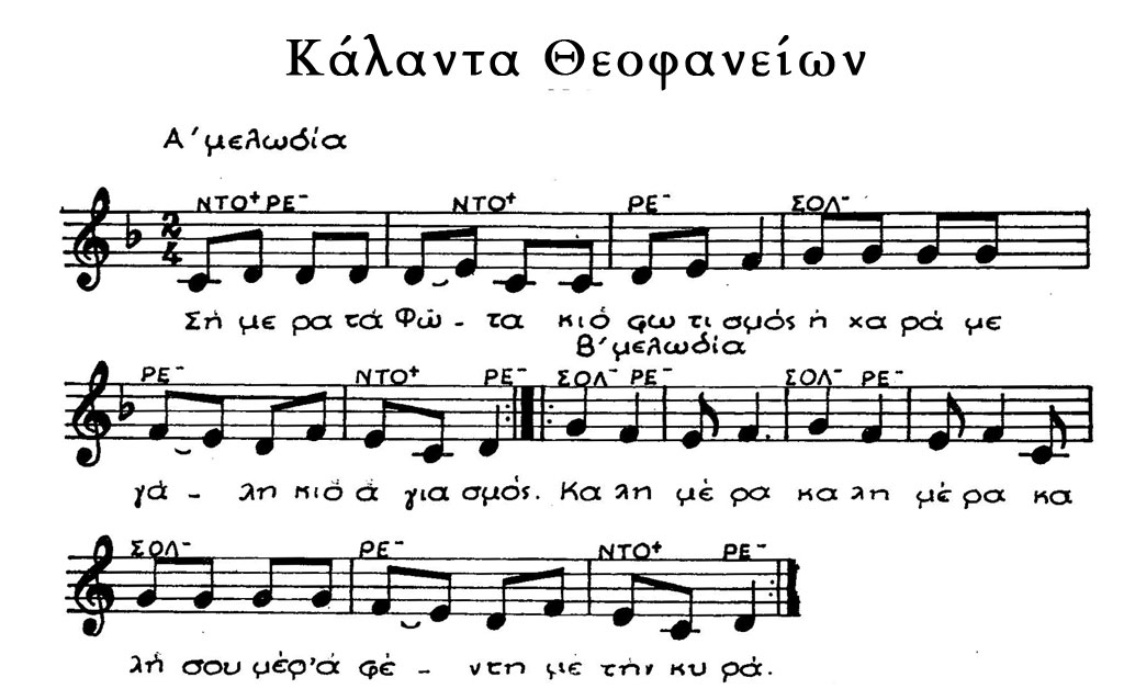 Λιγότερο γνωστά είναι τα κάλαντα των Θεοφανίων (Των Φώτων):