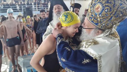 Ο Μητροπολίτης έδωσε χρυσό σταυρό στην Δέσποινα Γιάτσιου, αθλήτρια του Κολυμβητικού Συλλόγου Γρεβενών “Μεγαλέξανδρος” που έπιασε πρώτη τον Τίμιο Σταυρό καθώς επίσης και στον Γιάννη Λόλα του Κολυμβητικού Συλλόγου “Ελιμεία Γρεβενών” που έπιασε πρώτος τον Σταυρό στην μικρή πισίνα.