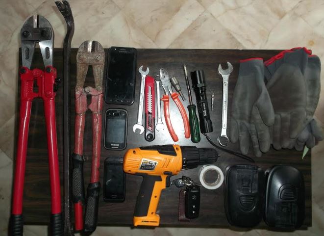• πλήθος διαρρηκτικών εργαλείων μέσων τέλεσης (μεταλλικοί κόφτες, λοστός, κατσαβίδια κ.λ.π).