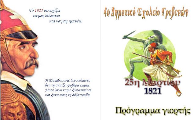 Σας καλούμε στη γιορτή μας για την επέτειο της 25ης Μαρτίου 1821 που θα πραγματοποιηθεί την Παρασκευή 24 Μαρτίου 2017 και ώρα 10:15 π.μ. π.μ. στην αίθουσα Πολλαπλών Χρήσεων του Σχολείου μας.