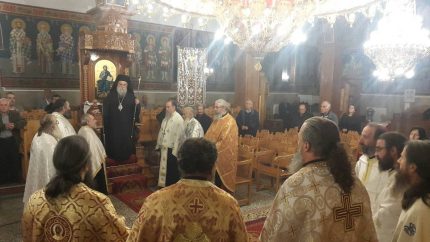 Την Τρίτη, 31 Οκτωβρίου 2017, παραμονή της εορτής, τελέστηκε Μέγας Αρχιερατικός Εσπερινός στον Ιερό Ναό Αγίου Γεωργίου Κιβωτού, χοροστατούντος του Σεβασμιωτάτου Μητροπολίτου Γρεβενών κ. Δαβίδ, με τη συμμετοχή πολλών κληρικών της Μητροπόλεως, ευλαβών πιστών και παιδιών του Ποντιακού Συλλόγου Κιβωτού.