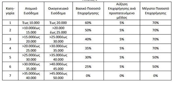 Αναλυτικά τα εισοδηματικά κριτήρια παρατίθενται στον πίνακα: