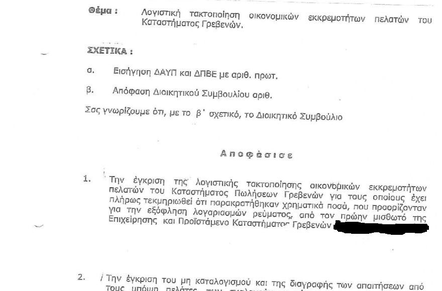 Εγκρίθηκε από το διοικητικό συμβούλιο της ΔΕΗ η τακτοποίηση των οικονομικών απαιτήσεων πελατών της στα Γρεβενά, που υπέβαλλαν αίτηση για τη διαγραφή ποσών σε λογαριασμούς, καθώς αυτά είχαν κατατεθεί στον πρώην προϊστάμενο του παραρτήματος, χωρίς όμως να έχουν αποδοθεί από τον ίδιο στην Επιχείρηση.