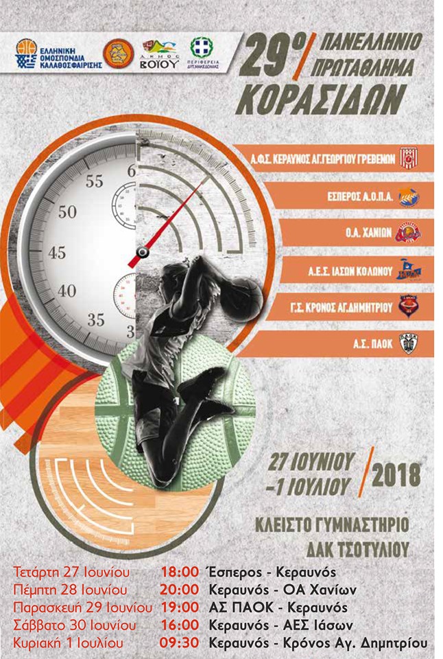Την Τετάρτη 27 Ιουνίου ξεκινάει το 29ο Πανελλήνιο Πρωτάθλημα Κορασίδων Καλαθοσφαίρισης,το οποίο θα διεξαχθεί στο Τσοτύλι,με την συμμετοχή της ομάδας των Γρεβενών, ΚΕΡΑΥΝΟΣ ΑΓ. ΓΕΩΡΓΙΟΥ, για πρώτη φορά στην ιστορία της.