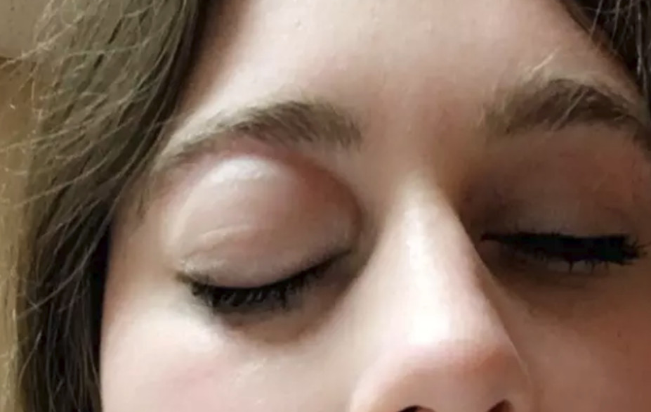 Μέσα σε λίγα λεπτά ο λαιμός και το μάτι της πρήστηκαν και η φωτογραφία της κοπέλας έγινε viral στο διαδίκτυο.