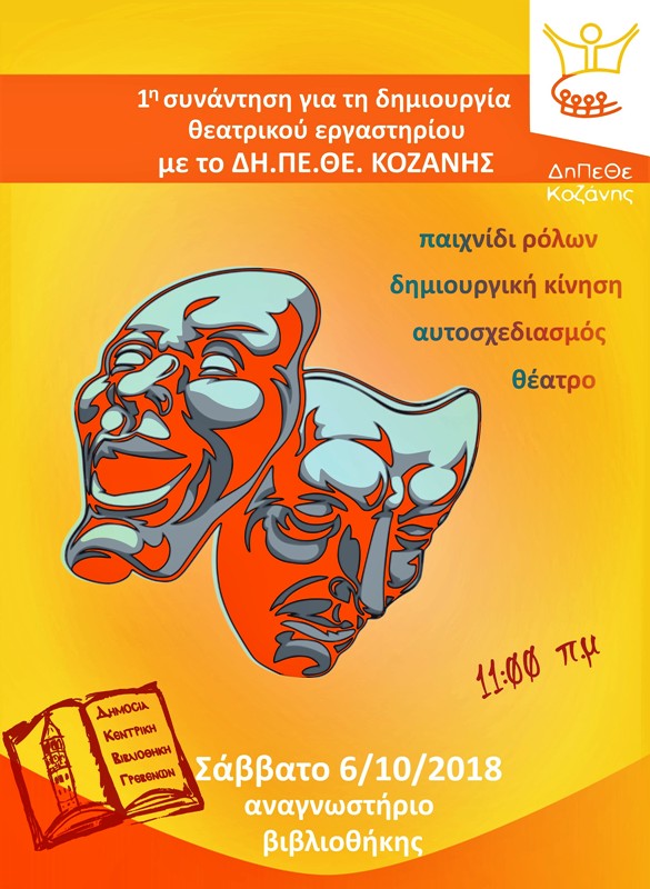 Το ΔΗΠΕΘΕ Κοζάνης και η Δημόσια Κεντρική Βιβλιοθήκη Γρεβενών στήνουν και φέτος το «Θεατρικό εργαστήρι για παιδιά» και δίνουν απλόχερα τη δυνατότητα απόκτησης, πολύ χρήσιμων για τη ζωή δεξιοτήτων, για τους μικρούς μας φίλους.