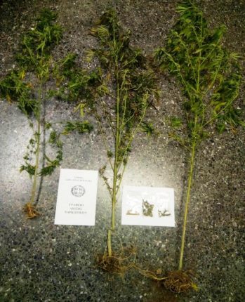 Κατασχέθηκαν 3 δενδρύλλια κάνναβης, 14,97 γραμμάρια ακατέργαστης κάνναβης, 172 σπόροι κάνναβης και 24 αρχαία αντικείμενα