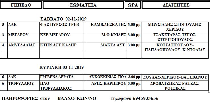 Ο Πρόεδρος της Επιτροπής Διαιτησίας όρισε τους Διαιτητές για να διευθύνουν τους αγώνες Α΄ Κατηγορίας Α, Β Περιφέρειας 3ης αγων. και Γ Περιφέρειας 2ης αγων. , ως εξής: