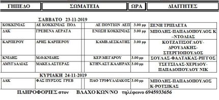 Ο Πρόεδρος της Επιτροπής Διαιτησίας όρισε τους Διαιτητές για να διευθύνουν τους αγώνες Α΄ Κατηγορίας Α, Β Περιφέρειας 1ης αγων. Β Γύρου και Γ Περιφέρειας Β γύρου 2ης αγων. , ως εξής: