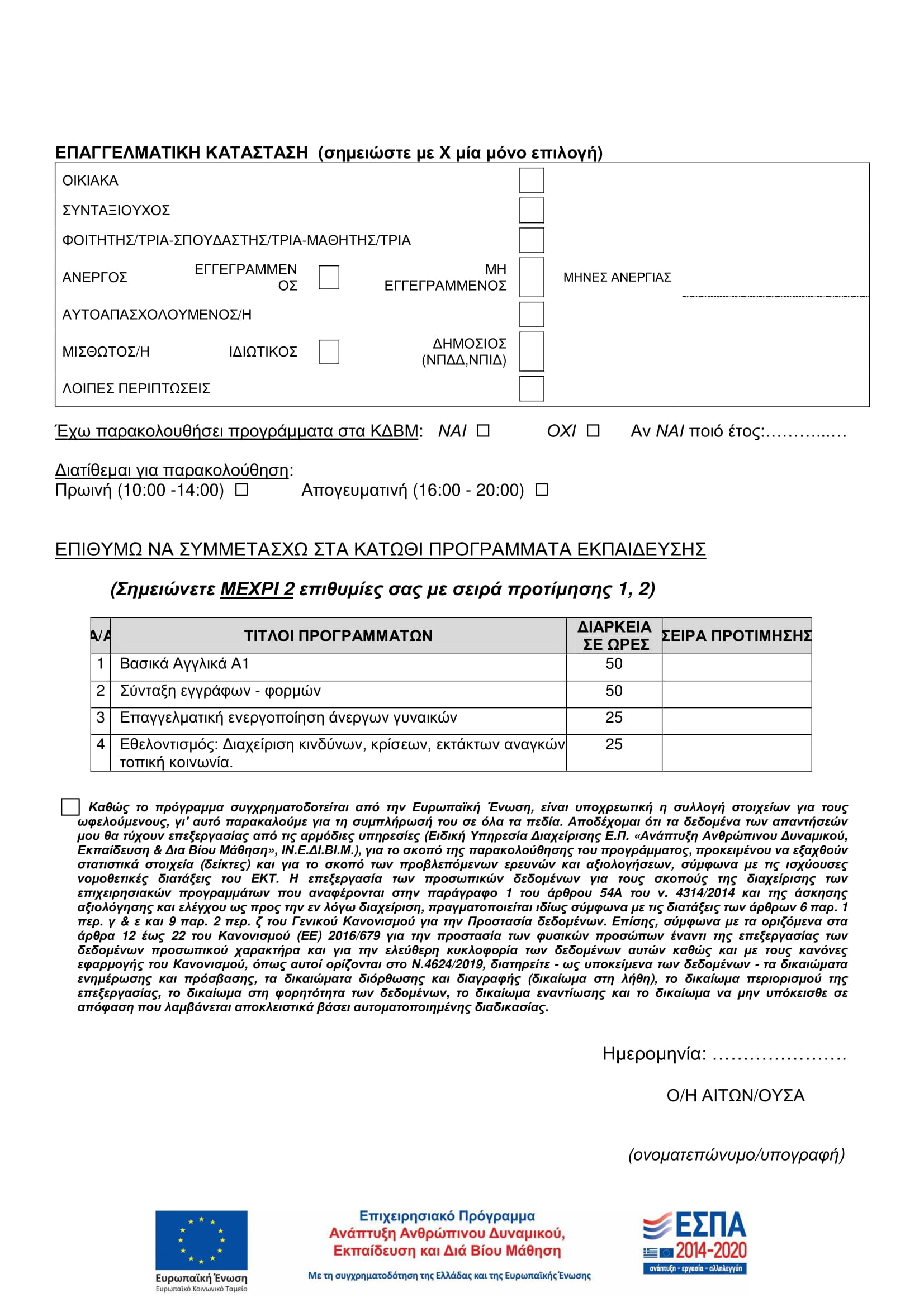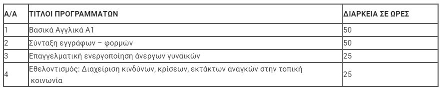 Στο Κ.Δ.Β.Μ. του Δήμου Γρεβενών μπορούν να δημιουργηθούν τμήματα για τα ακόλουθα προγράμματα:
