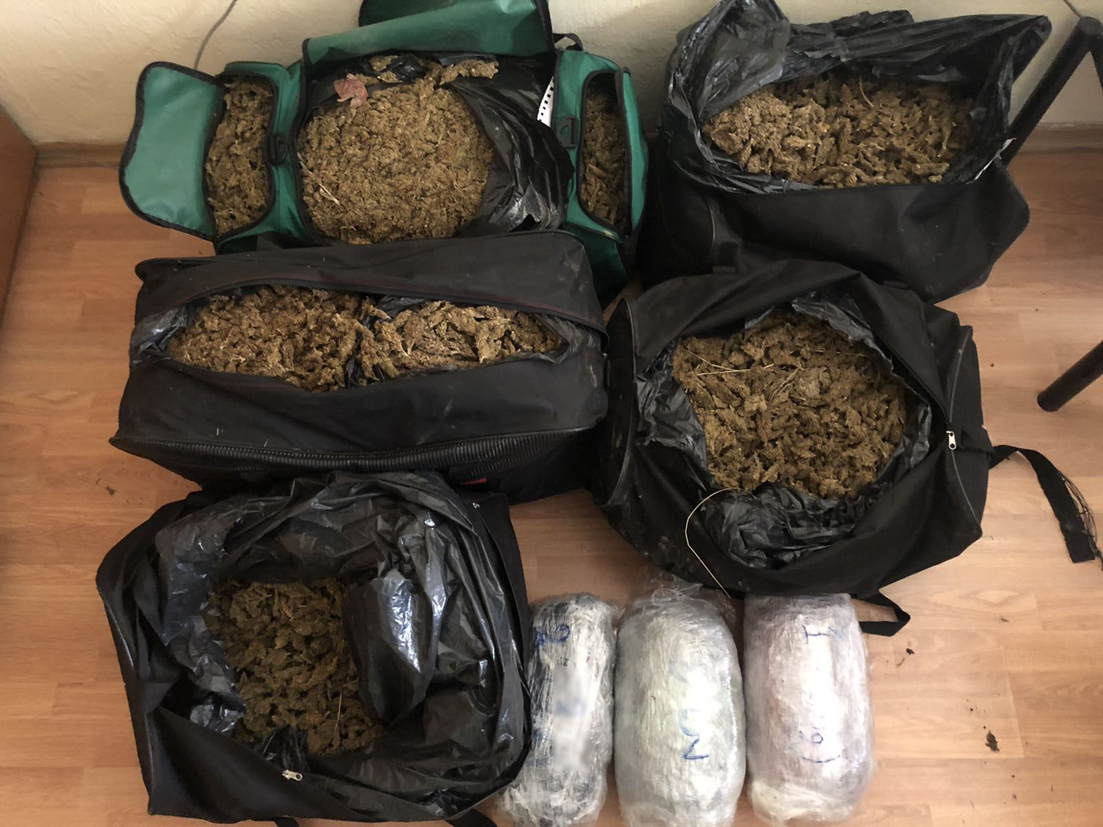 Κατά τον έλεγχο βρέθηκαν εντός του αυτοκινήτου, πέντε (5) ταξιδιωτικοί σάκοι που περιείχαν ακατέργαστη κάνναβη, συνολικού βάρους σαράντα τριών (43) κιλών και διακοσίων δέκα (210) γραμμαρίων.