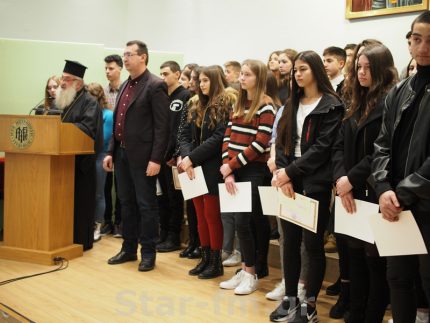 Παρουσία των τοπικών αρχών, στην κατάμεστη αίθουσα από γονείς και παιδιά, προλογίσαντος του Γεν. Αρχιερατικού π. Ευστάθιου Στέφου, βραβευτήκαν μαθητές της Δευτεροβάθμιας Εκπαίδευσης με το ποσό των 250 ευρώ και μαθητές Δημοτικών Σχολείων με το ποσό των 200 ευρώ.