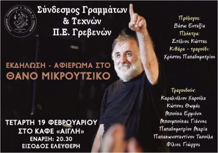 Την Τετάρτη 19 Φεβρουαρίου, στην καφετέρια ΑΙΓΛΗ δέκα μέλη του ΣΥΝΔΕΣΜΟΥ με πρωτοβουλία του Αντιπροέδρου Χρήστου Παπαδημητρίου παρουσίασαν ένα πολύ όμορφο αφιέρωμα στον προσφάτως θανόντα μουσικοσυνθέτη Θάνο Μικρούτσικο, σε μια ασφυκτικά γεμάτη αίθουσα που το απόλαυσαν όλοι όσοι παραβρέθηκαν και θυμήθηκαν τις παλιές εποχές που στην χώρα μας υπήρχε παλμός και αγωνιστικότητα και αισιοδοξία για κάτι καλύτερο με τους κοινούς αγώνες. Θέλουμε να ευχαριστήσουμε όλα τα μέλη που μας πρόσφεραν αυτή την πολύ ωραία βραδιά, αλλά και όλους όσοι μας τίμησαν με την παρουσία τους. Υποσχόμαστε ότι θα ακολουθήσουν και άλλες τέτοιες όμορφες βραδιές.