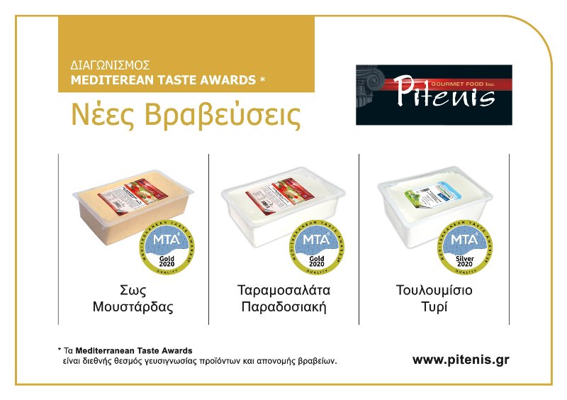 Την βράβευση τριών προϊόντων μας στην κατηγορία Quality (2 Gold & 1 Silver) είχαμε στο διαγωνισμό της Mediterranean Taste Awards 2020, που πραγματοποιήθηκε στο Ηράκλειο της Κρήτης, υπό την αιγίδα του Υπουργείου Αγροτικής Ανάπτυξης και Τροφίμων το διάστημα 15-18 Ιουνίου 2020.