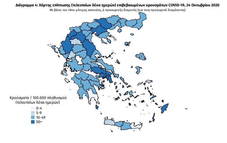 Ο χάρτης, με τα 30 νέα κρούσματα στην Κοζάνη, τα 27 στην Καστοριά και τα 30 στα Ιωάννινα, στον ΑΕΤΟ