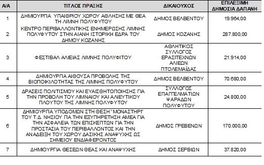 Τις αποφάσεις ένταξης επτά (7) έργων Δημόσιου χαρακτήρα υπέγραψε ο Πρόεδρος της Επιτροπής Διαχείρισης Προγράμματος (ΕΔΠ) της ΑΝΚΟ, κος Τσιούμαρης Γρηγόρης, Αντιπεριφερειάρχης Κοζάνης, στο πλαίσιο της πρόσκλησης με τίτλο : «ΔΗΜΟΣΙΕΣ ΕΠΕΝΔΥΣΕΙΣ ΓΙΑ ΤΗΝ ΑΕΙΦΟΡΟ ΑΝΑΠΤΥΞΗ ΤΩΝ ΑΛΙΕΥΤΙΚΩΝ ΠΕΡΙΟΧΩΝ» της Προτεραιότητας 4 «Αύξηση της Απασχόλησης και της Εδαφικής Συνοχής» του Ε.Π. «ΑΛΙΕΙΑΣ ΚΑΙ ΘΑΛΑΣΣΑΣ 2014-2020» που διαχειρίζεται η Αναπτυξιακή Δυτικής Μακεδονίας ως Ενδιάμεσος Φορέας.